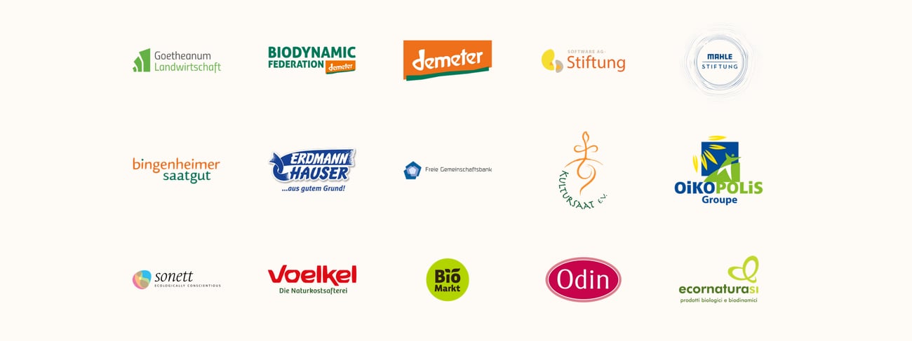 This year as well, we would like to once again extend our sincere thanks to our sponsors and supporters. Thanks to their generous support, it is possible to offer a diverse program and bring together members of the worldwide biodynamic movement. Our supporters include foundations as well as companies and associations.