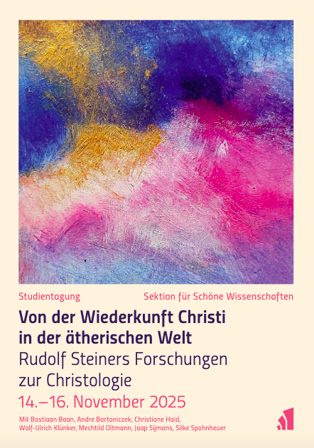 Von der Wiederkunft Christi in der ätherischen Welt - Rudolf Steiners Forschungen zur Christologie Studientagung vom 14.-16. November 2025 Liebe Freundinnen und Freunde der Sektion für Schöne Wissenschaften, liebe Interessentinnen und Interessenten, die Erscheinung Christi im Ätherischen hat Rudolf Steiner mit dem Beginn des 20. Jahrhunderts für die nächsten 3000 Jahre angekündigt und auch darauf hingewiesen, dass immer mehr Menschen fähig werden würden, Christus auf dieser Ebene wahrzunehmen. Doch auch wenn die Wiederkunft eine Tatsache ist,