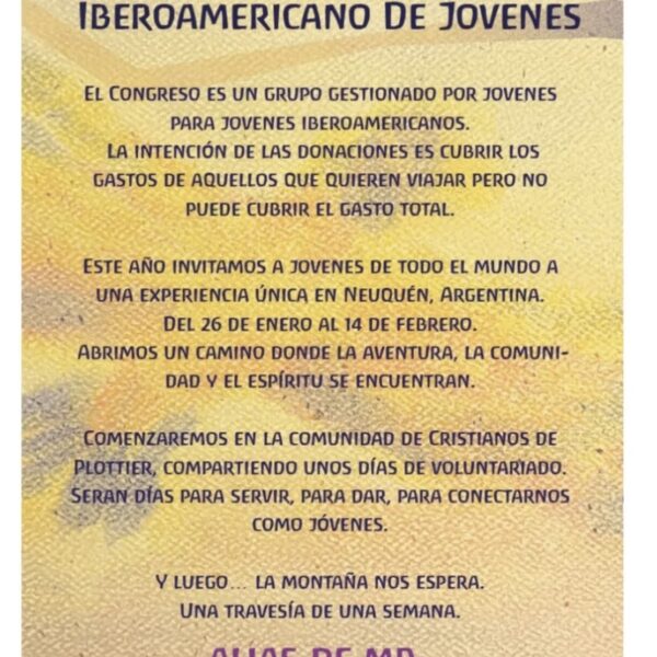 Después del 1º Congreso en Colombia (2023) y del 2º en Brasil (2024), llega el 3er Congreso Iberoamericano de Jóvenes, que tendrá lugar en enero de 2026, en Argentina.